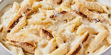 A bed of Penne noodles and grilled chicken strips smothered in alfredo sauce and finished with Pecorino Romano cheese.